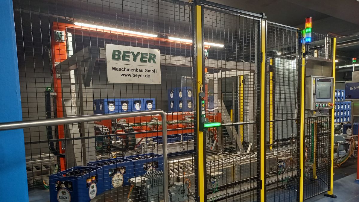 Manuell war das Auffüllen des Flaschenstroms mit Neuflaschen einfach nicht mehr zu bewerkstelligen, also installierte die Privatbrauerei Ustersbach einen automatischen Neuglasschieber. Und weil die Be- und Entpalettierer auch schon über 20 Jahre auf dem Buckel hatten, wurden die gleich mit gegen neue ausgetauscht. Lieferant war der Trockenteil-Spezialist Beyer Maschinenbau.
