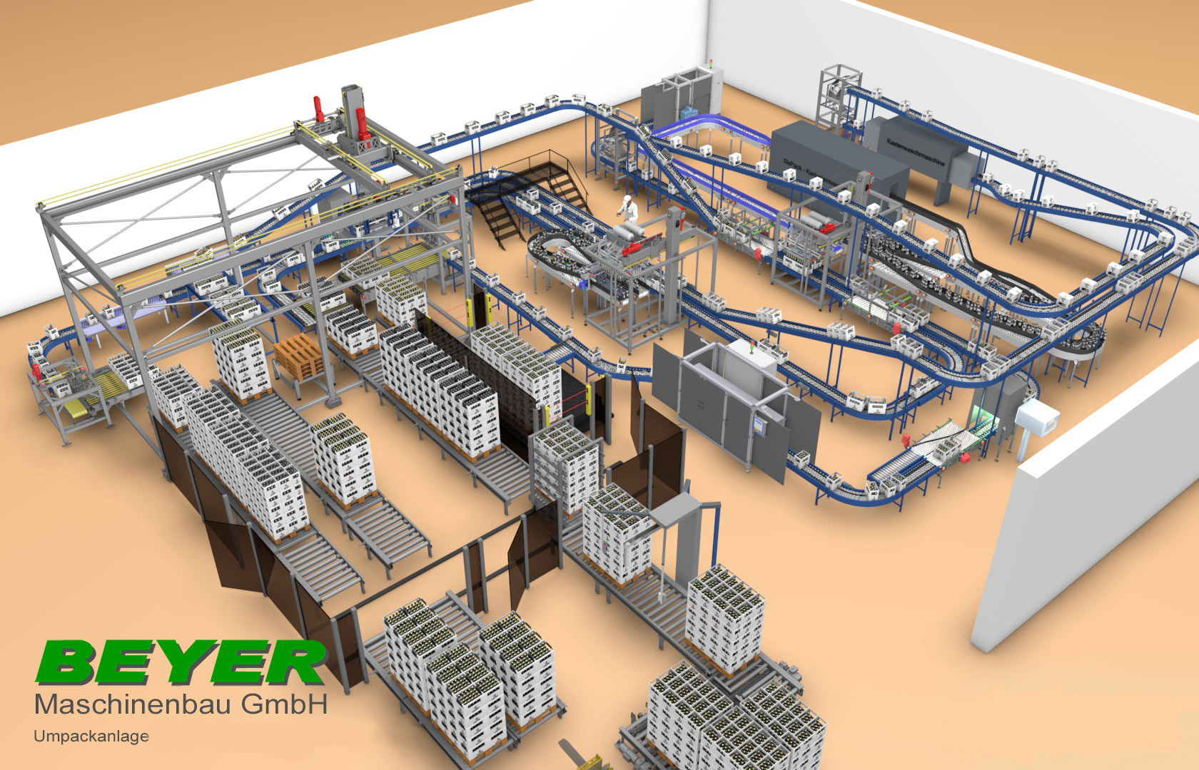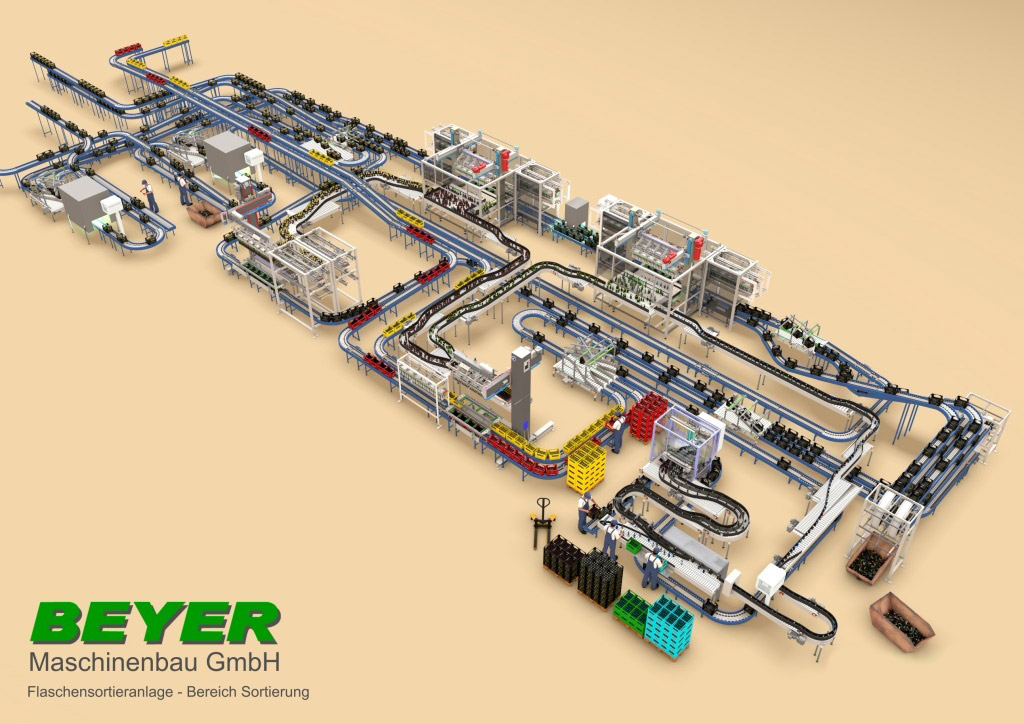 Die BEYER Maschinenbau GmbH liefert nicht nur Einzelmaschinen. Seit über 20 Jahren planen und liefern wir komplette Trockenteilanlagen für Abfüllanlagen von PET und Glas, Einweg und Mehrweg oder übernehmen die Gesamtverantwortung für Ihre komplette Abfülllinie inkl. Nassteil.