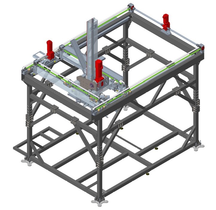 - Fahrachsen in x und y-Richtung als Rollenfahrwerke ausgeführt
